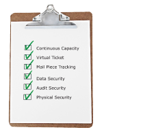 When a direct mail job reaches Franklin, we generate a job ticket to drive an intelligent process. Two items appear on a physical ticket: a unique client ID and a unique project number. All else — from data entries to printing instructions, shipping directions and checklists — is generated electronically. More